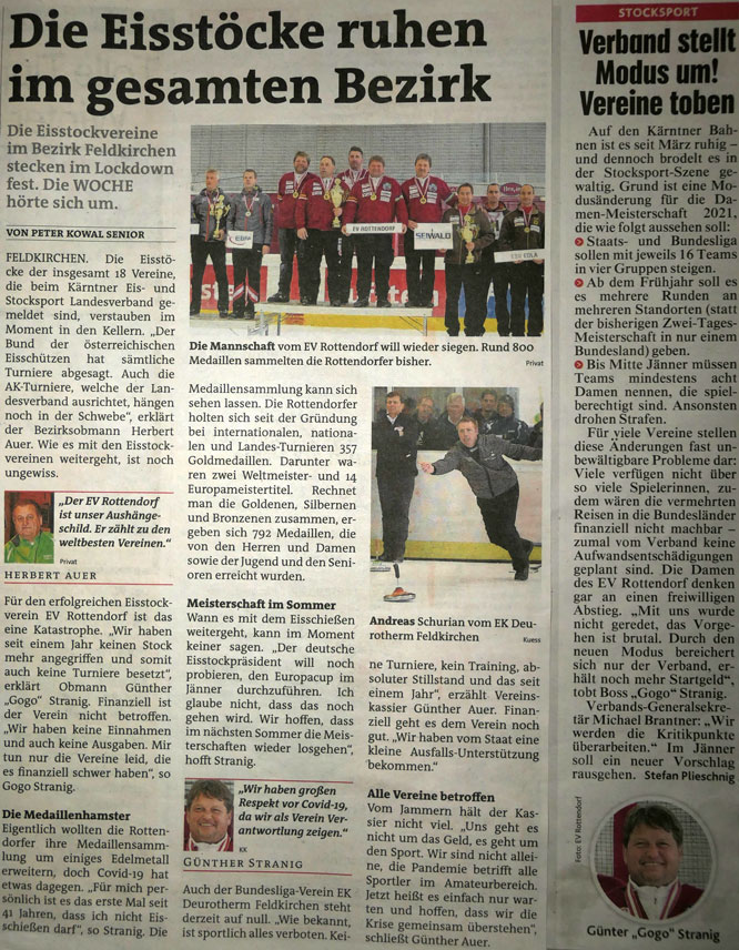 Medienbericht - EVR Obmann 21.12.2020 Die Woche & Kronen Zeitung Meisterschaft ruht aber Modusänderung ist der Pausenfüller
