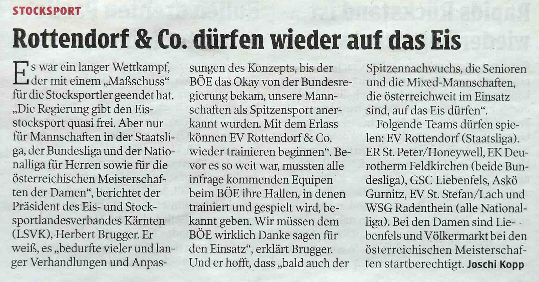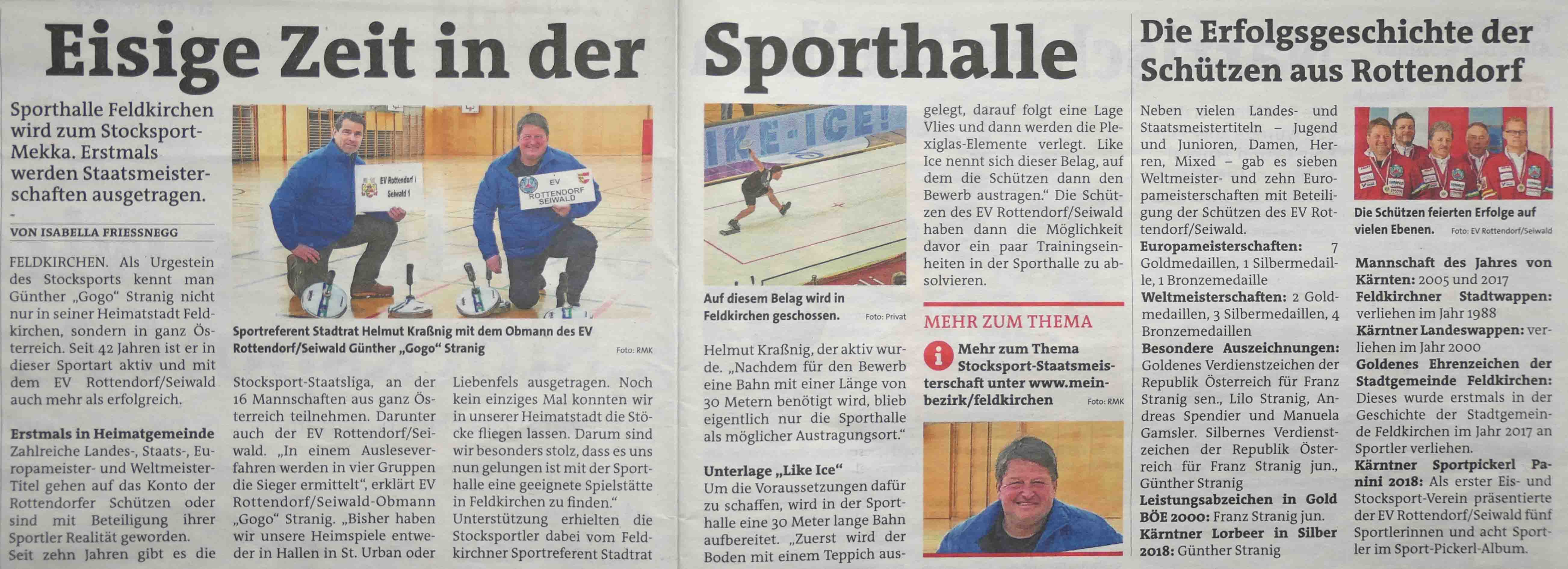 Medienbericht 14.02.2021 Kleine Zeitung Stocksport erwacht aus dem Dornröschenschlaf Medienbericht mit EVR-Obmann 27.01.2020 Die Woche - Mein Bezirk Neuer Spielort war nötig