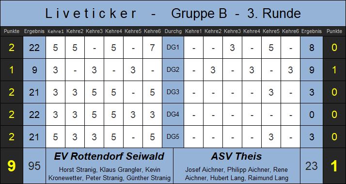 Erst im Laufe des Jahres beim EV Rottendorf angeheuert, für das Zweierteam eingeplant, stürmte der "Grizzley" aufgrund der aktuellen Personalnot in die erste Mannschaft und überzeugte bei seinem Depüt mit einer fehlerlosen Leistung. Seine Moar-Position absolvierte Klausi ohne Fehl und Tadel. Ganz stark spielte auch der "alte Bomber," Gogo Stranig, der sein Team wie in den besten Zeiten anführte.