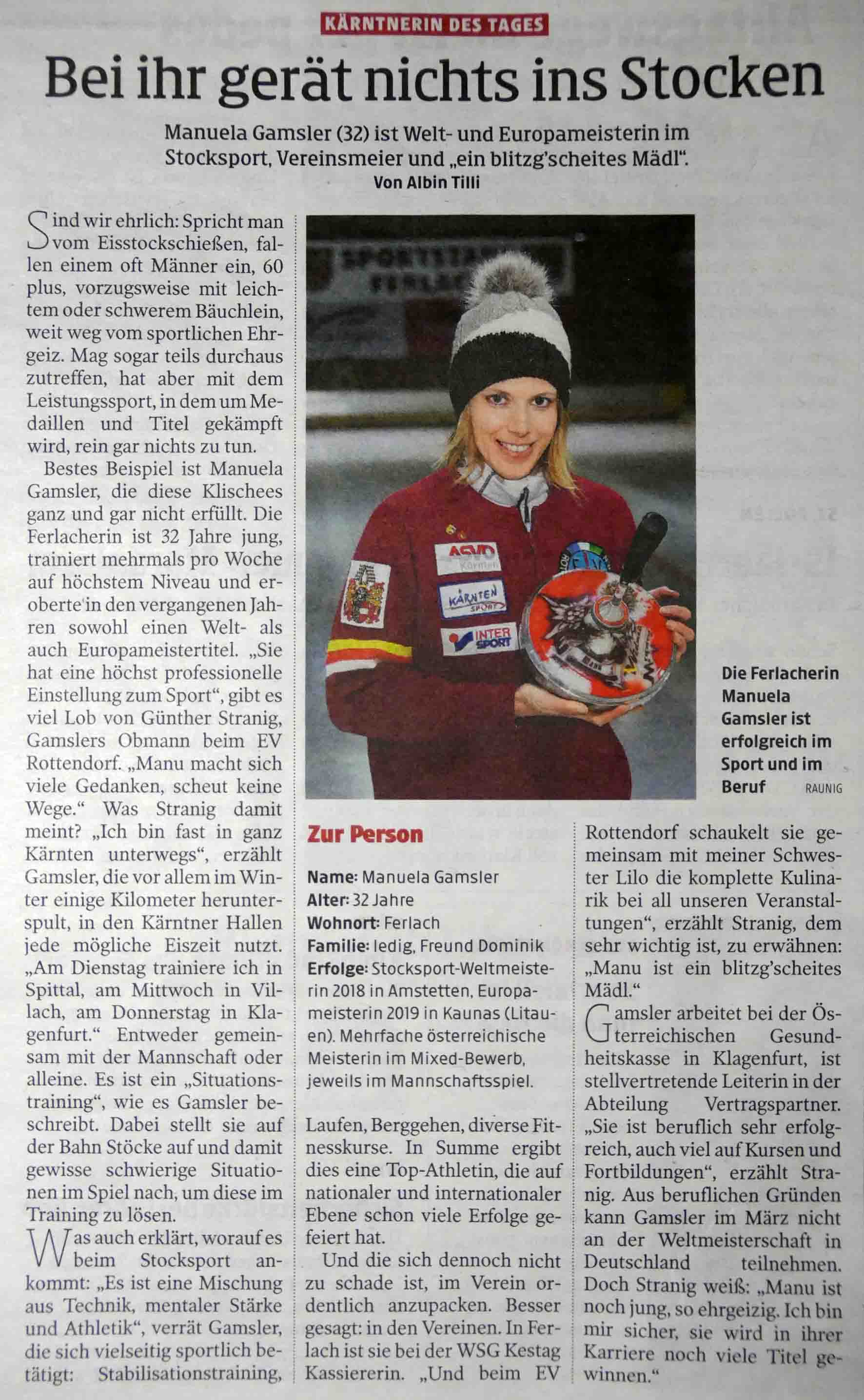 Medienbericht vom 01.02.2020(Kronen Zeitung - Sportteil)