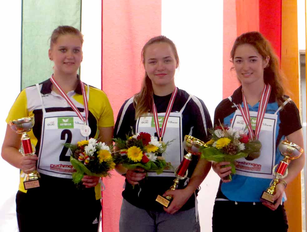 Eine Klasse für sichBettina Rauscher (EV Rottendorf) war bei der weiblichen Jugend (U16) eine Klasse für sich und gewann mit tollen 298 Punkten und einem Vorsprung von 62 Zählern auf die Zweitplatzierte Wade (St) die Goldmedaille. Die Vereinskollegin Anja Salbrechter wollte da natürlich nicht nachstehen, die St. Veiterin siegte bei den neunzehnjährigen Ladys (278).