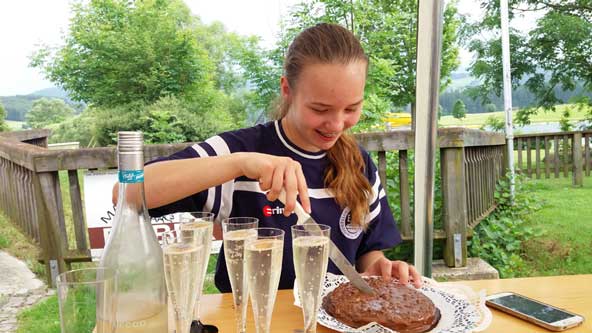 Gleich im ersten Bahnspiel gewann das Rottendorfer Damenteam gegen die favorisierten Steirerinnen aus Riegersberg mit 14:8 und mussten erst im vierten Spiel gegen Außernzell die erste Niederlage an diesem Tag hinnehmen. Um aber nochmals in den Titelkampf eingreifen zu können war jetzt ein Sieg auf Bahn zwei erforderlich. Im Spiel gegen das deutsche Team von TSV Kühbach wogte das Spiel hin und her, und so ging Kühbach vor der letzten Kehre mit fünf Punkten Vorsprung ins Rennen. Rottendorf durfte keinen Fehler begehen und setzte die Gegnerinnen mit großartigen Versuchen immer mehr unter Druck und schafften verdient mit einer "5" den 11:11 Ausgleich.