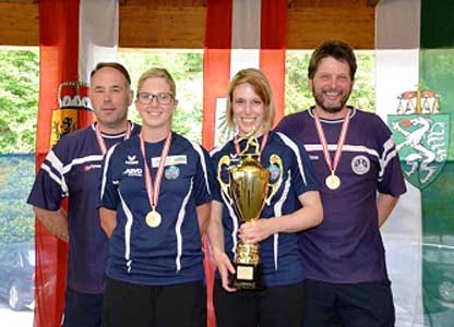 Bei den österreichischen Meisterschaften im Mixed-Bewerb in Köflach (St.) war der EV Rottendorf wiederum das Maß aller Dinge. Nach Gold und Bronze vom Vorjahr setzten die Tiebelstädter noch eins drauf und landeten einen eindrucksvollen Doppelerfolg. Beide Teams agierten von Beginn an äußerst treffsicher und ließen keinen Zweifel an den Titelambitionen aufkommen. Die Einsermannschaft mit Manuela Gamsler, Kerstin Müller, Andi Spendier und Horst Stranig, wiederholte den Vorjahrestitel.