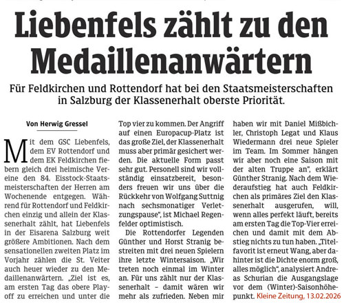 Während für den EV Rottendorf/Seiwald mit drei neuen Spielern im Team nur ein Ziel zählt – der Klassenerhalt, will der GSC Liebenfels erneut ganz vorne mitmischen. Der EK Deurotherm Feldkirchen komplettiert das Kärntner Trio nach dem Wiederaufstieg.