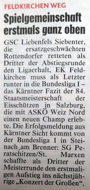 Die drei Neuen kämpften sich in die Meisterschaft hinein, speziell am 1. Tag war klar ersichtlich das der Sprung von der zweithöchsten Liga in Kärnten in die höchste Liga Österreichs ein (zu)großer war.