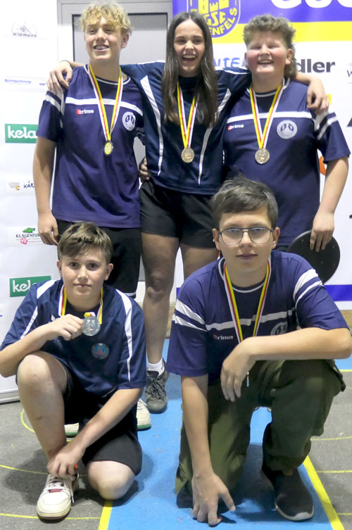 Auch die U16 unter der Betreuung von Johann Schopf jun. und Markus Walter durfte über eine Medaille jubeln: Alexander Schopf, Jakob Wieser, Felix Zöchling, Benedikt Holzer, Jonas Strasser und Jana Maria Tratar holten Bronze im Mannschaftsspiel.