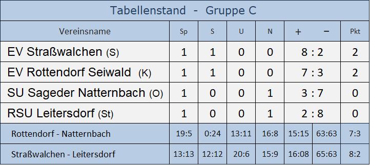 Der EV Rottendorf Seiwald fand in Liebenfels nicht nur eine neue Spielstätte für die Staatsliga sondern mit dem GSC Liebenfels auch einen kongenialen Partner um seine Stocksport-Events verwirklichen zu können. Die Tiebelstätter treffen im ersten Heimspiel auf die Sportunion Natternbach (OÖ), die bereits in der vorjährigen Spielsaison Gruppengegner war, damals konnten beide Teams ihre Heimspiele für sich entscheiden.