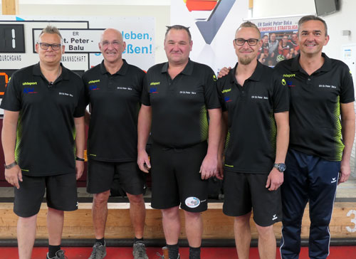 Im 5. Durchgang griff einmal mehr bei Rottendorf ein Offizieller in das Spiel ein. Beim Stand von 2:2 platzierte Gogo Stranig seinen Defensivversuch erfolgreich nahe der Daube und Rottendorf hatte noch einen weiteren Versuch zum möglichen 4:2. Plötzlich machte Wettbewerbsleiter Georg Smounig den Schiedsrichter auf ein „schreckliches“ Vergehen des Spielers aufmerksam. Gogo Stranig hätte die Bodenmarkierung nicht berührte, so dass der Hauptschiedsrichter majestätsgetreu den erfolgreichen Versuch von Rottendorf aus dem Spielfeld nahm. Wohl dieser völlig überraschenden Aktion geschuldet zeigte der letzte Rottendorfer bei seinem Maßversuch Nerven und versemmelte diesen. So standen aus durchaus möglichen zwei Punkten Vorsprung für Rottendorf plötzlich zwei Punkte Rückstand zu Buche. St. Peter nahm das Geschenk gerne an und verkürzte den Spielstand am Ende noch auf 4:6.