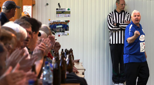 Schade, da haben die Tiebelstädter wahrlich eine große Chance liegen gelassen, sich in der Gruppe B abzusetzen. Die erfahrene Truppe startete schwach ins Spiel hinein, konnte erst in der letzten Kehre einen „Schneider“ abwenden. Nach drei Durchgängen stand gerade mal 1 Punkt für Rottendorf zu Buche. Aber sie kämpften sich zurück und schienen nach dem 10:3 im vierten Durchgang auf der Überholspur zu sein, ehe es im 5. Durchgang, in der ersten Kehre, einen 3er zum Verdauen gab. Davon erholten sich die Tiebelstädter nicht mehr und mussten am Ende mit leeren Händen die Heimreise antreten.